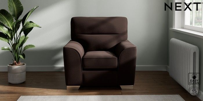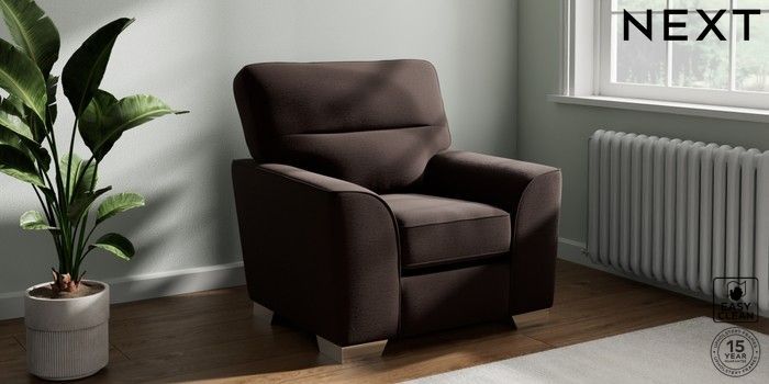 7.3.1 Buy Stamford Highback Armchair Fine Chenille Easy Clean Chocolate Brown Square Angle - Chrome Metal from the Next UK online shop Click here to use our accessible website