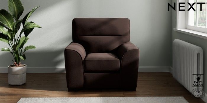 7.2.10 Buy Stamford Highback Armchair Fine Chenille Easy Clean Chocolate Brown Square Angle - Dark from the Next UK online shop Click here to use our accessible website