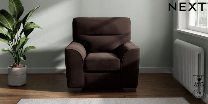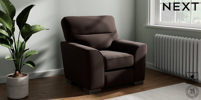 7.3.1 Buy Stamford Highback Armchair Fine Chenille Easy Clean Chocolate Brown Square Angle - Gunmetal from the Next UK online shop Click here to use our accessible website