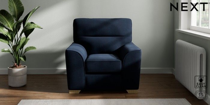7.2.10 Buy Stamford Highback Armchair Fine Chenille Easy Clean Dark Navy Blue Square Angle - Light from the Next UK online shop Click here to use our accessible website