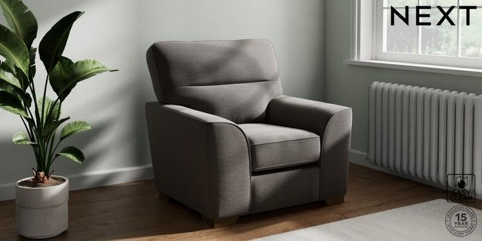 7.2.10 Buy Stamford Highback Armchair Fine Chenille Easy Clean Dark Smoke Grey Square Angle - Mid from the Next UK online shop Click here to use our accessible website