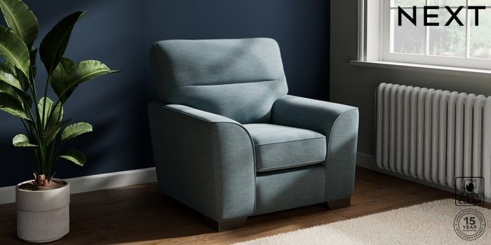 7.2.10 Buy Stamford Highback Armchair Fine Chenille Easy Clean Mid Blue Square Angle - Gunmetal from the Next UK online shop Click here to use our accessible website