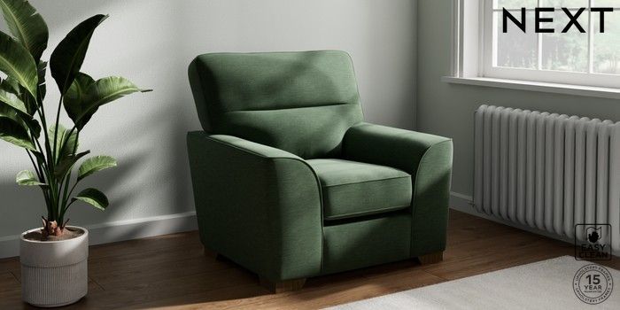 7.2.10 Buy Stamford Highback Armchair Fine Chenille Easy Clean Mid Khaki Green Square Angle - Mid from the Next UK online shop Click here to use our accessible website