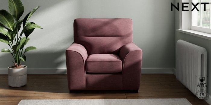 7.3.1 Buy Stamford Highback Armchair Fine Chenille Easy Clean Mid Mulberry Purple Square Angle - Dark from the Next UK online shop Click here to use our accessible website