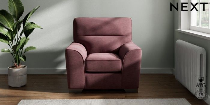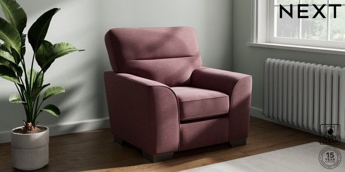 7.3.1 Buy Stamford Highback Armchair Fine Chenille Easy Clean Mid Mulberry Purple Square Angle - Gunmetal from the Next UK online shop Click here to use our accessible website
