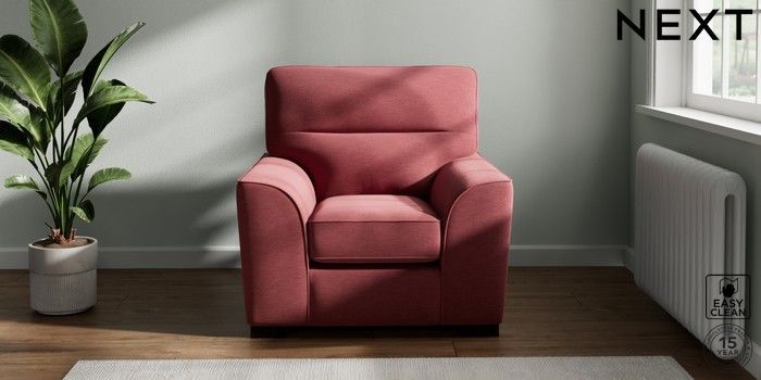 7.2.10 Buy Stamford Highback Armchair Fine Chenille Easy Clean Mid Pink Square Angle - Dark from the Next UK online shop Click here to use our accessible website