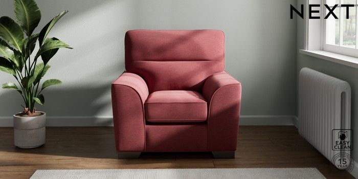 7.3.1 Buy Stamford Highback Armchair Fine Chenille Easy Clean Mid Pink Square Angle - Gunmetal from the Next UK online shop Click here to use our accessible website