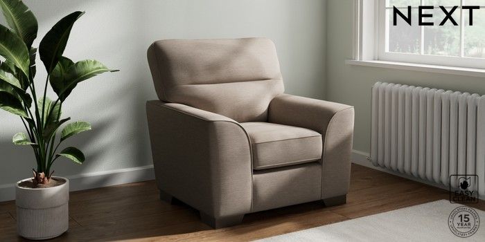 7.3.1 Buy Stamford Highback Armchair Fine Chenille Easy Clean Mid Taupe Brown Square Angle - Gunmetal from the Next UK online shop Click here to use our accessible website
