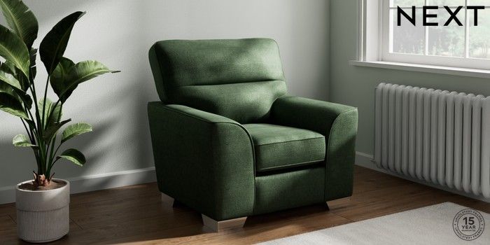7.2.10 Buy Stamford Highback Armchair Luxe Chenille Dark Green Square Angle - Chrome Metal from the Next UK online shop Click here to use our accessible website