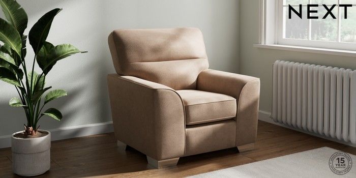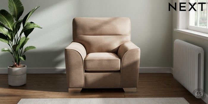7.3.1 Buy Stamford Highback Armchair Luxe Chenille Mid Natural Square Angle - Chrome Metal from the Next UK online shop Click here to use our accessible website