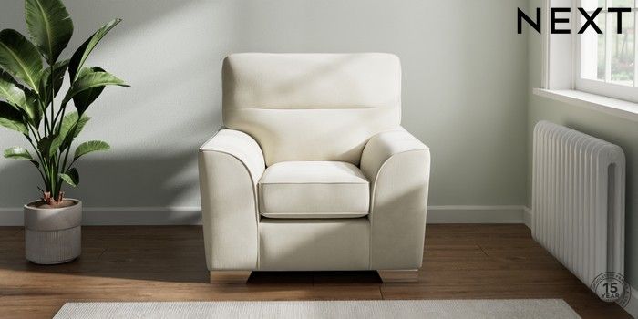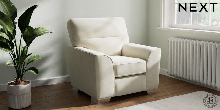 7.0.3 Buy Stamford Highback Armchair Luxe Chenille Oyster Square Angle - Chrome Metal from the Next UK online shop Click here to use our accessible website