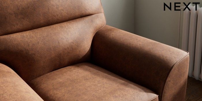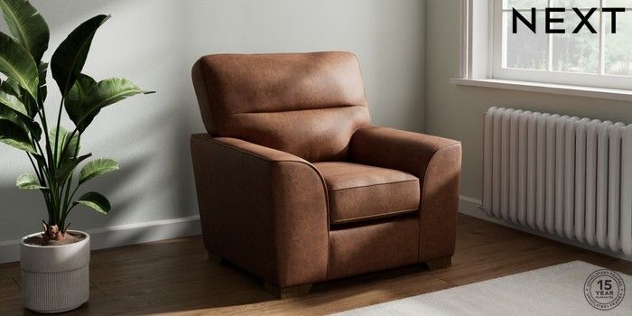 7.3.1 Buy Stamford Highback Armchair Monza Faux Leather Easy Clean Chestnut Brown Square Angle - Mid from the Next UK online shop Click here to use our accessible website