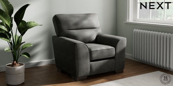 7.3.1 Buy Stamford Highback Armchair Monza Faux Leather Easy Clean Dark Grey Square Angle - Gunmetal from the Next UK online shop Click here to use our accessible website