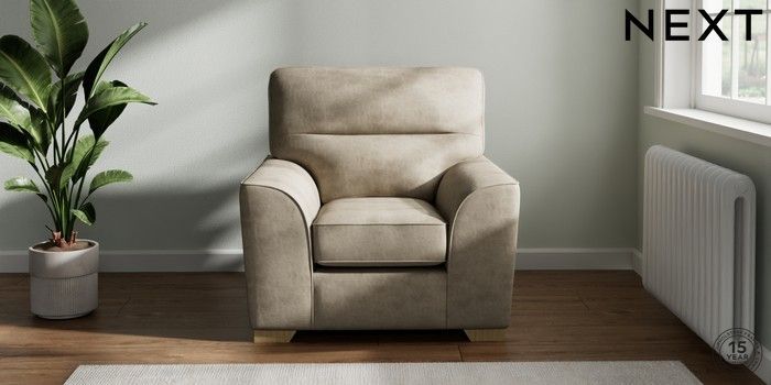 7.3.1 Buy Stamford Highback Armchair Monza Faux Leather Easy Clean Mink Brown Square Angle - Light from the Next UK online shop Click here to use our accessible website