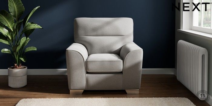 7.2.10 Buy Stamford Highback Armchair Natural Mix Light Grey Square Angle - Chrome Metal from the Next UK online shop Click here to use our accessible website
