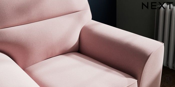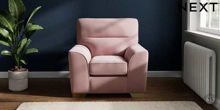 7.2.6 Buy Stamford Highback Armchair Natural Mix Light Rose Pink Square Angle - Brushed Brass from the Next UK online shop Click here to use our accessible website