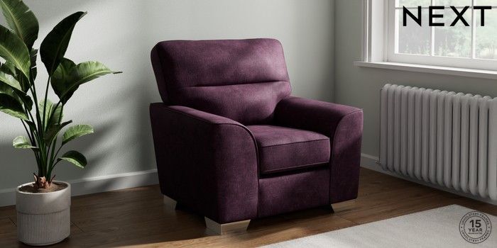 7.3.1 Buy Stamford Highback Armchair Plush Chenille Dark Plum Purple Square Angle - Chrome Metal from the Next UK online shop Click here to use our accessible website