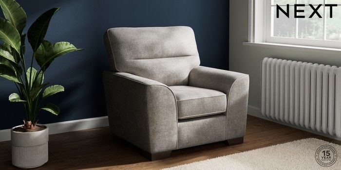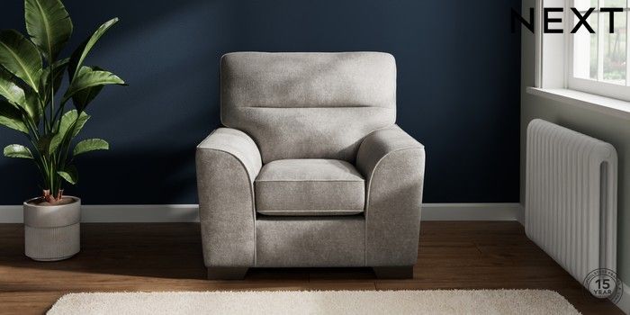 7.2.10 Buy Stamford Highback Armchair Plush Chenille Light Grey Square Angle - Gunmetal from the Next UK online shop Click here to use our accessible website