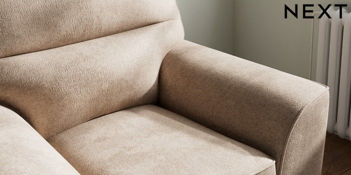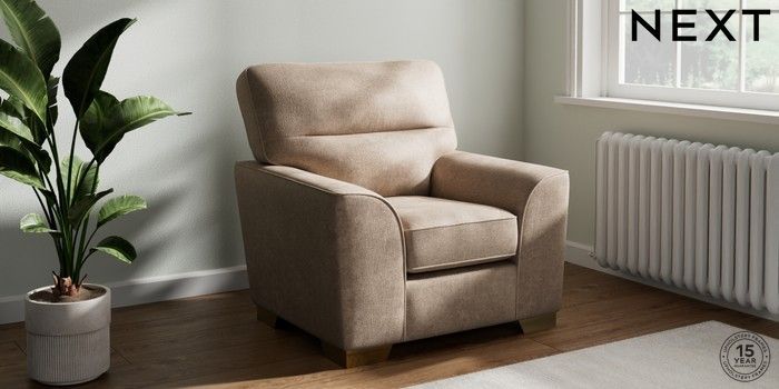7.2.10 Buy Stamford Highback Armchair Plush Chenille Mid Natural Square Angle - Brushed Brass from the Next UK online shop Click here to use our accessible website
