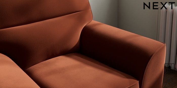 7.3.1 Buy Stamford Highback Armchair Plush Velvet Easy Clean Ginger Orange Square Angle - Brushed Brass from the Next UK online shop Click here to use our accessible website
