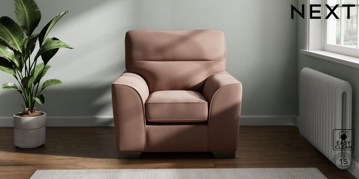7.3.1 Buy Stamford Highback Armchair Plush Velvet Easy Clean Mid Natural Square Angle - Gunmetal from the Next UK online shop Click here to use our accessible website