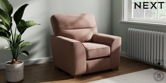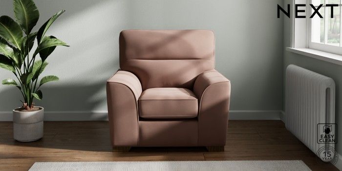 7.3.1 Buy Stamford Highback Armchair Plush Velvet Easy Clean Mid Natural Square Angle - Mid from the Next UK online shop Click here to use our accessible website