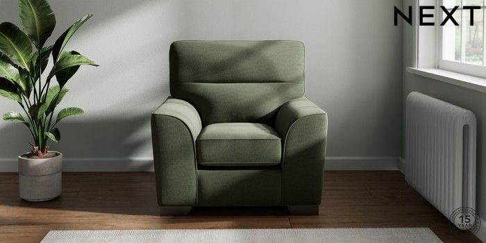 7.3.1 Buy Stamford Highback Armchair Relaxed Linen Look Dark Green Square Angle - Gunmetal from the Next UK online shop Click here to use our accessible website