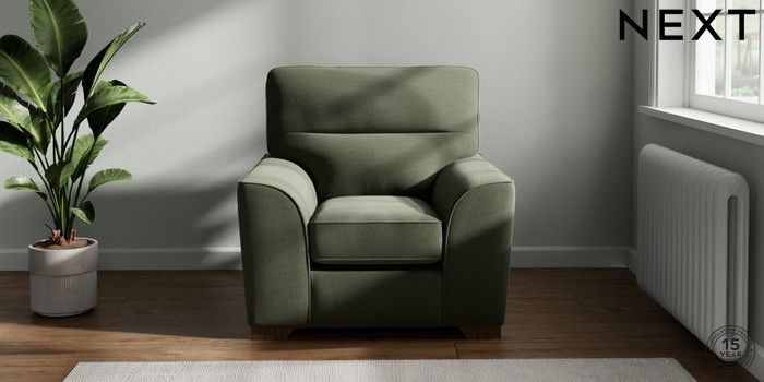 7.2.10 Buy Stamford Highback Armchair Relaxed Linen Look Dark Green Square Angle - Mid from the Next UK online shop Click here to use our accessible website