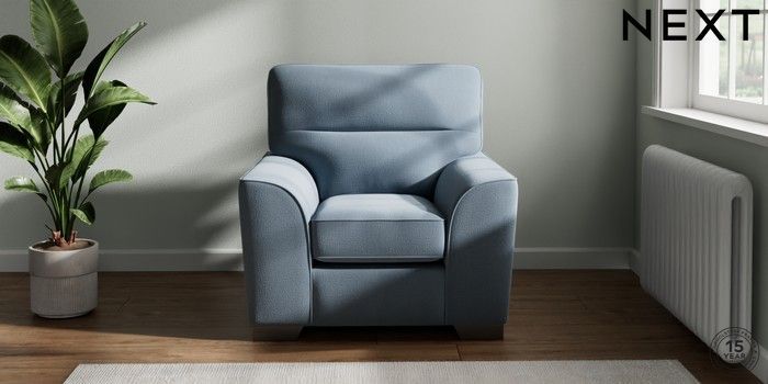 7.3.1 Buy Stamford Highback Armchair Relaxed Linen Look Mid Blue Square Angle - Gunmetal from the Next UK online shop Click here to use our accessible website