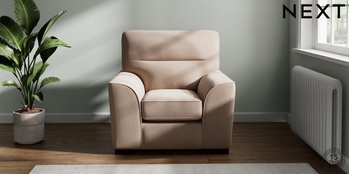 7.3.1 Buy Stamford Highback Armchair Relaxed Linen Look Mid Natural Square Angle - Dark from the Next UK online shop Click here to use our accessible website