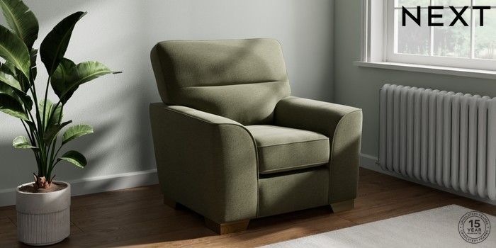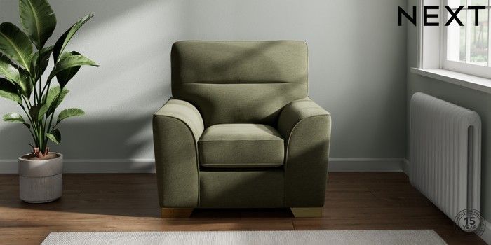 7.2.10 Buy Stamford Highback Armchair Ripple Chenille Mid Moss Green Square Angle - Brushed Brass from the Next UK online shop Click here to use our accessible website