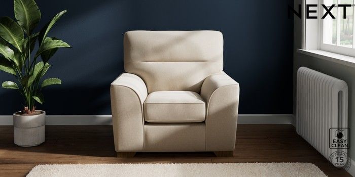 7.2.6 Buy Stamford Highback Armchair Tweedy Blend Easy Clean Oyster Square Angle - Mid from the Next UK online shop Click here to use our accessible website