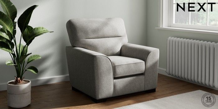 7.2.10 Buy Stamford Highback Armchair Tweedy Chenille Mid Grey Square Angle - Dark from the Next UK online shop Click here to use our accessible website