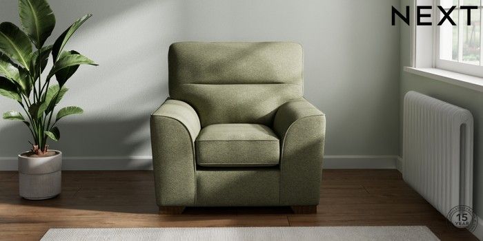 7.2.10 Buy Stamford Highback Armchair Tweedy Chenille Mid Moss Green Square Angle - Mid from the Next UK online shop Click here to use our accessible website
