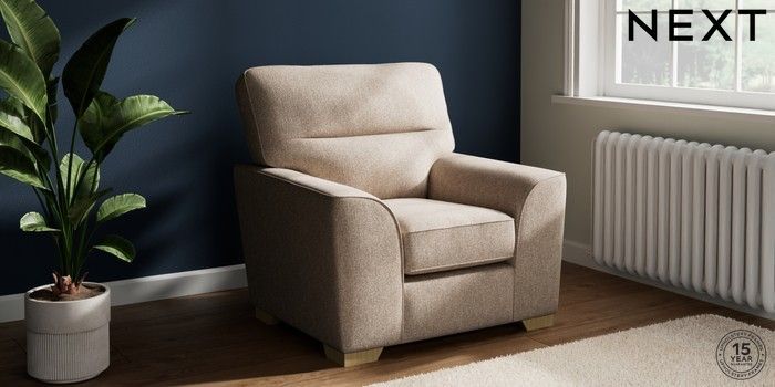 7.2.10 Buy Stamford Highback Armchair Tweedy Chenille Mid Natural Square Angle - Light from the Next UK online shop Click here to use our accessible website