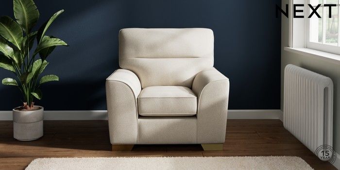 7.2.10 Buy Stamford Highback Armchair Tweedy Chenille Oyster Square Angle - Brushed Brass from the Next UK online shop Click here to use our accessible website