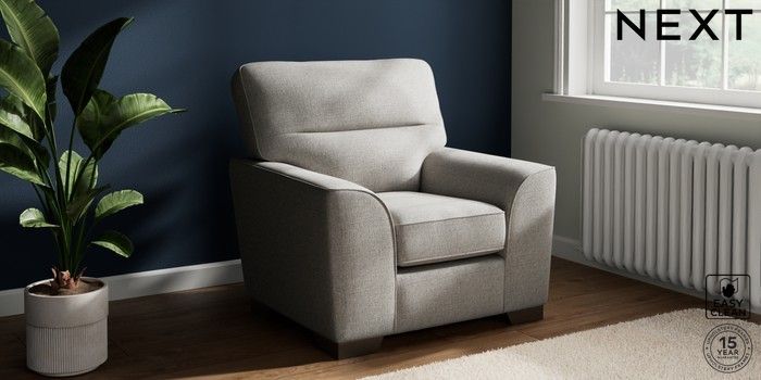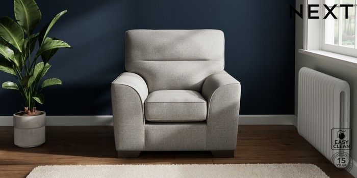7.2.10 Buy Stamford Highback Armchair Woven Chenille Easy Clean Light Grey Square Angle - Gunmetal from the Next UK online shop Click here to use our accessible website
