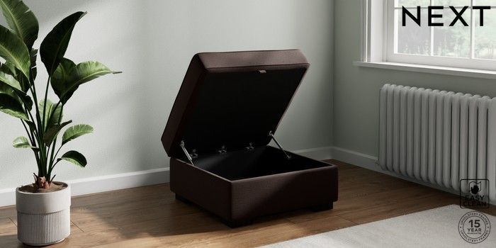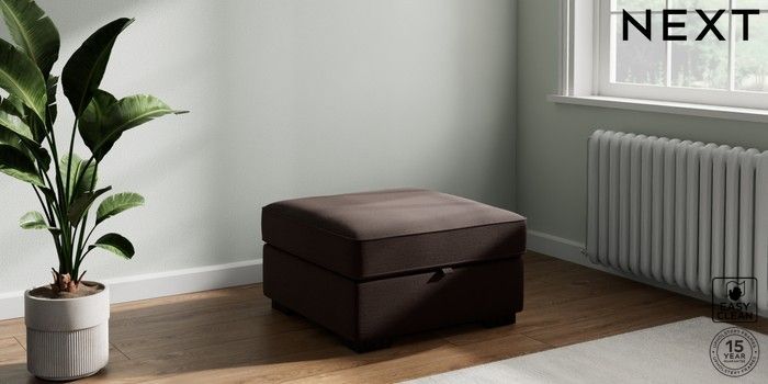 7.2.10 Buy Stamford Highback Storage Footstool Fine Chenille Easy Clean Chocolate Brown Square Angle - Dark from the Next UK online shop Click here to use our accessible website