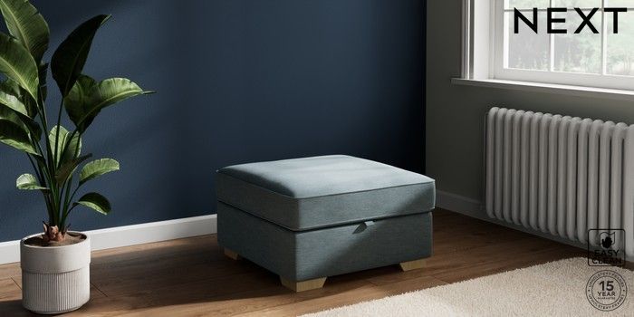 7.2.6 Buy Stamford Highback Storage Footstool Fine Chenille Easy Clean Mid Blue Square Angle - Light from the Next UK online shop Click here to use our accessible website