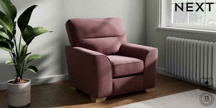 7.2.10 Buy Stamford Highback Armchair Fine Chenille Easy Clean Mid Mulberry Purple Square Angle - Light from the Next UK online shop Click here to use our accessible website