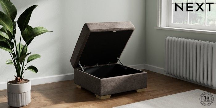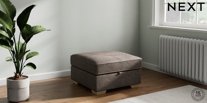 7.2.10 Buy Stamford Highback Storage Footstool Plush Chenille Mink Brown Square Angle - Light from the Next UK online shop Click here to use our accessible website