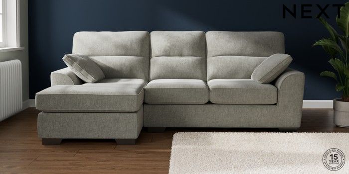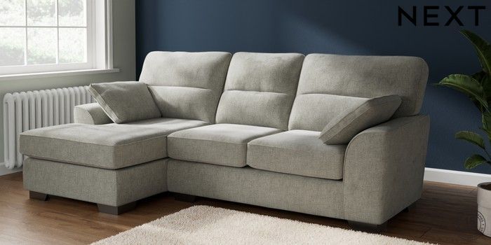 7.2.6 Buy Stamford Highback Medium Sofa Chaise - Left Hand Chunky Chenille Light Grey Large Square Angle - Gunmetal from the Next UK online shop Click here to use our accessible website