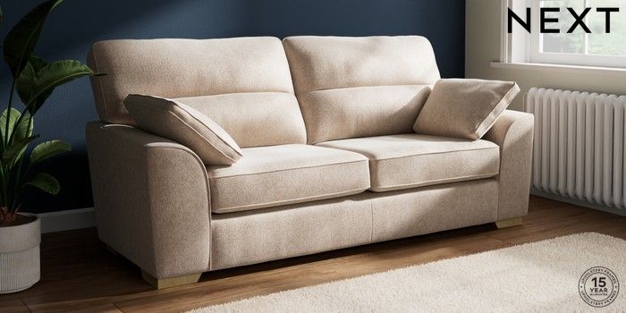 7.2.10 Buy Stamford Highback 3 Seater Sofa Cotswold Chenille Light Natural Large Square Angle - Light from the Next UK online shop Click here to use our accessible website
