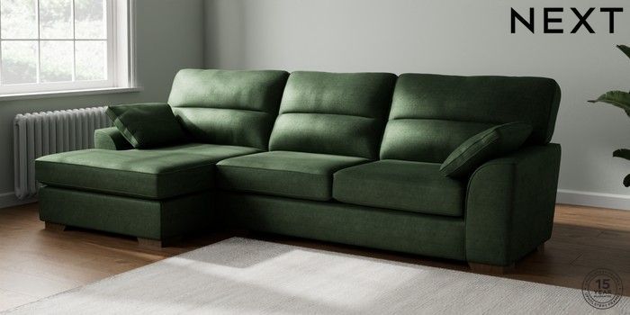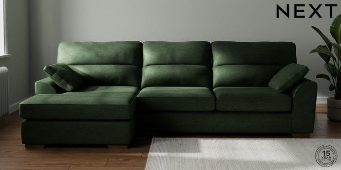 7.2.10 Buy Stamford Highback Large Sofa Chaise - Left Hand Luxe Chenille Dark Green Large Square Angle - Mid from the Next UK online shop Click here to use our accessible website