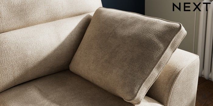 7.2.10 Buy Stamford Highback 2 Seater Small Sofa Plush Chenille Light Natural Large Square Angle - Mid from the Next UK online shop Click here to use our accessible website