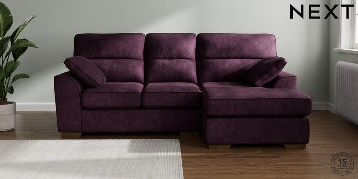 7.2.10 Buy Stamford Highback Small Sofa Chaise - Right Hand Plush Chenille Dark Plum Purple Large Square Angle - Mid from the Next UK online shop Click here to use our accessible website
