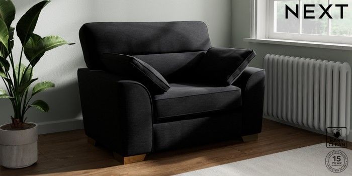7.2.6 Buy Stamford Highback Snuggle Fine Chenille Easy Clean Black Large Square Angle - Brushed Brass from the Next UK online shop Click here to use our accessible website
