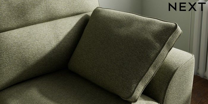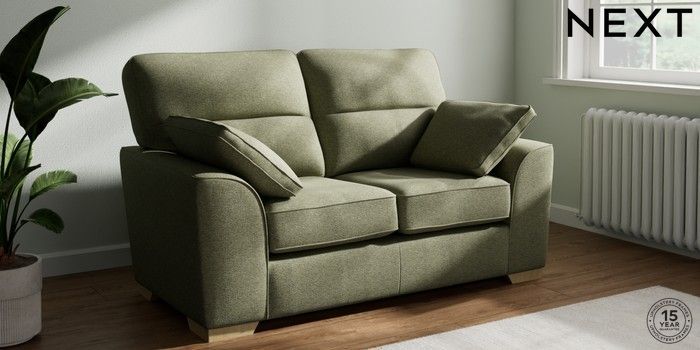 7.2.10 Buy Stamford Highback 2 Seater Small Sofa Tweedy Chenille Mid Moss Green Large Square Angle - Light from the Next UK online shop Click here to use our accessible website