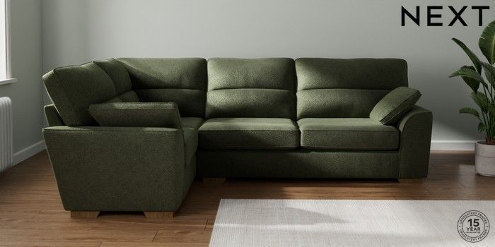7.2.10 Buy Stamford Highback Large Corner Sofa - Left Hand Boucle Chenille Dark Moss Green Large Square Angle - Mid from the Next UK online shop Click here to use our accessible website