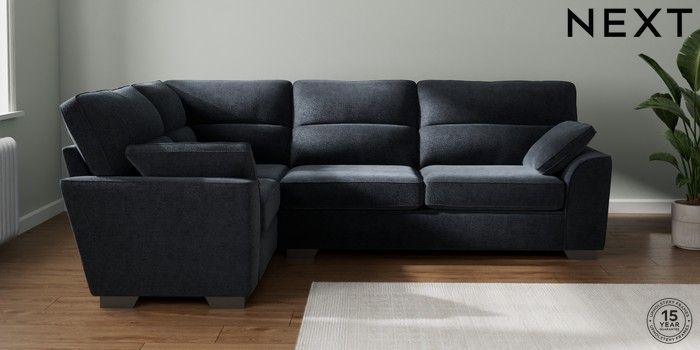 7.2.10 Buy Stamford Highback Large Corner Sofa - Left Hand Boucle Chenille Dark Slate Blue Large Square Angle - Gunmetal from the Next UK online shop Click here to use our accessible website